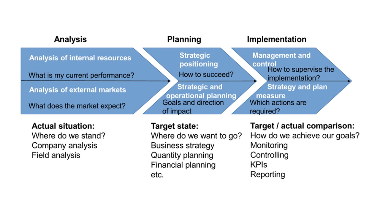 The following illustration can serve as a guideline for strategic development/planning. Further details of the 3-step approach are given below.